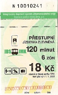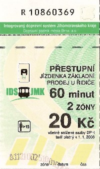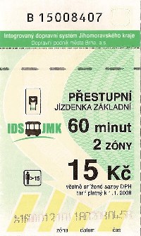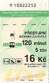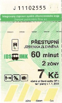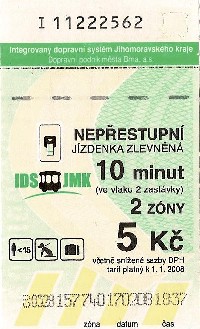 | Zlevněná, 2 zóny, 60 minut, 15Kč-Řidič | |