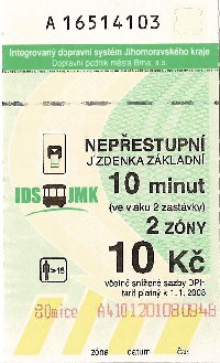 Základní, 2 zóny, 10 minut, 10Kč |