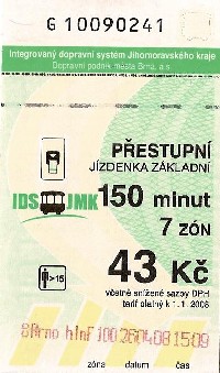 Základní, 7 zón, 150 minut, 43Kč |