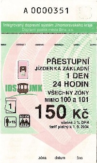 Základní, mimo 100+101, 24 hodin, 150Kč (platí lístky z minulého tarifu) |